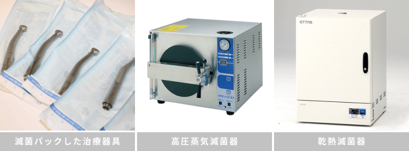 治療に使う器具は患者さんごとに洗浄・消毒し、使い捨ての滅菌パックに入れて保管しています。